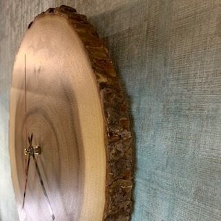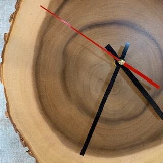 一枚板テーブルで絶大な人気を誇るモンキーポッドを輪切りにして作成したオリジナルの壁掛け時計です。